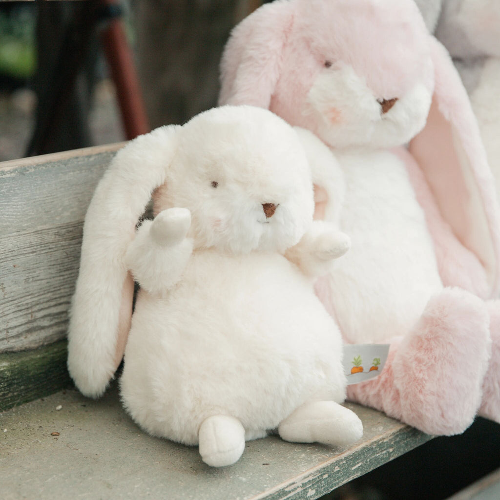 Our signature, luxurious soft Nibble fur is paired with embroidered eyes, softly blushed cheeks, and a velvety nose. Now available in a rainbow of colors, there is a nibble bunny for everyone on your list! Personalize their long lop ears for a special gift to last a lifetime!