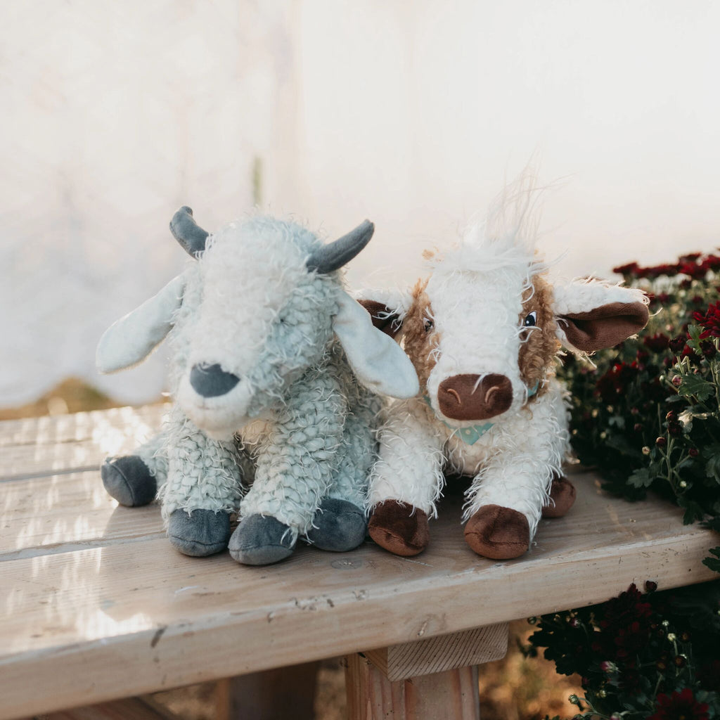 Hello Billy Goat, this scruffy little sweetheart is full of charm and cuddles! With scraggly blue and cream fur that’s soft to the touch and velour accents on his hooves and nose, Billy is as loveable as he is unique. From his floppy ears to his gentle embroidered face, he’s the perfect pal for farmyard fun and snuggly story times. A one-of-a-kind stuffed animal friend for little ones who love a bit of silly with the snuggle.