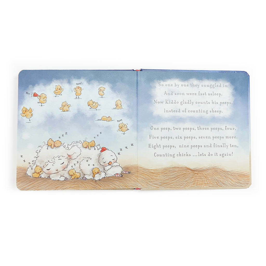 In the "Counting Peeps" children's book, Little lamb Kiddo learns that leaping and peeping lead to delightful, glad sleeping.