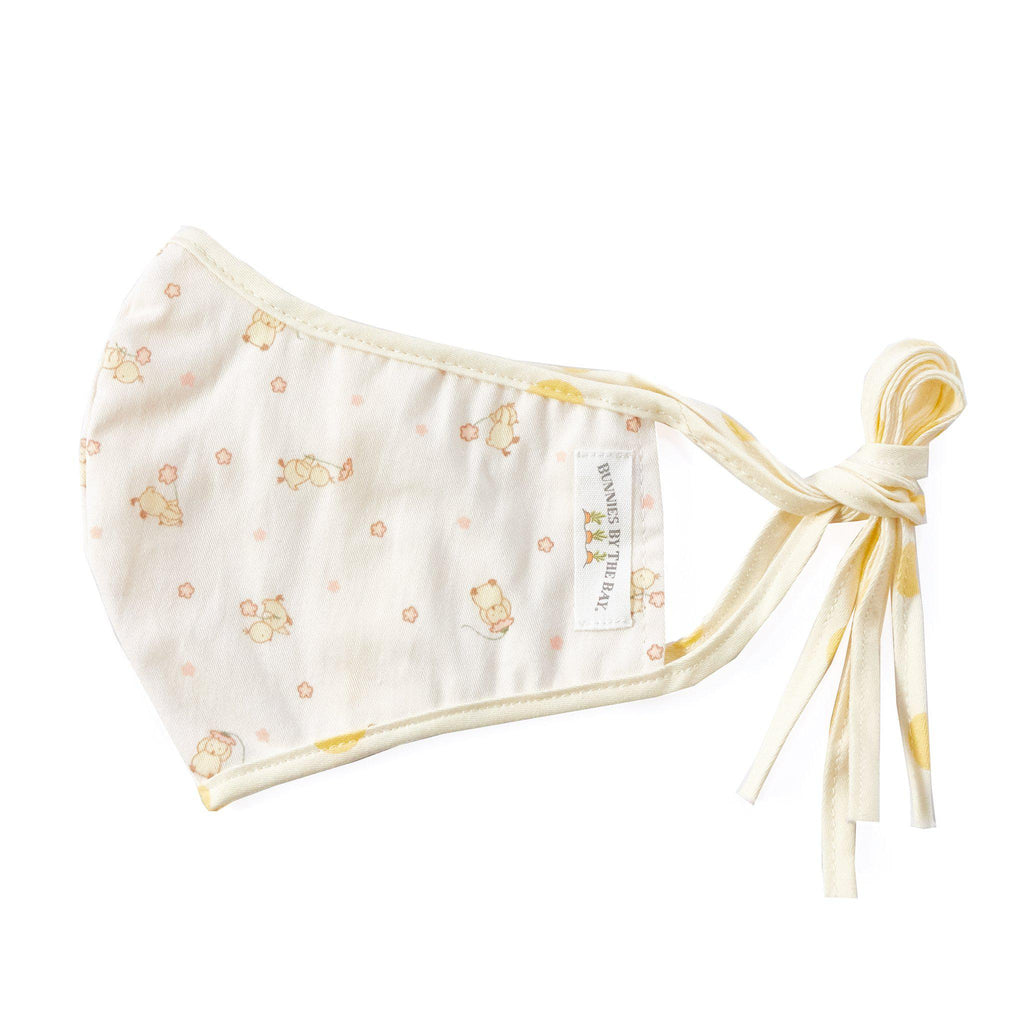 Perfectly neutral and suited for any gender, this pattern features an adorable yellow duck on a soft yellow background with little flowers sprinkled throughout. Yellow polka-dot bias trim and ties make wearing this mask comfortable, durable and too cute! Available in adult and child sizes so you can coordinate with your little ones.