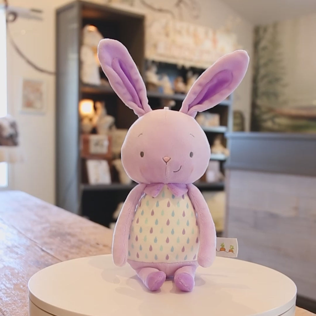 Celebrate the season with Grape Jelly, the purple bunny from our Jelly Buns Collection — the perfect Easter stuffed animal! With her soft velour body, built-in rain drop shirt, and sweet little collar, this plush bunny brings extra charm to springtime. An embroidered face, perky ears, and floppy arms and legs make them a cuddly friend little ones will love.