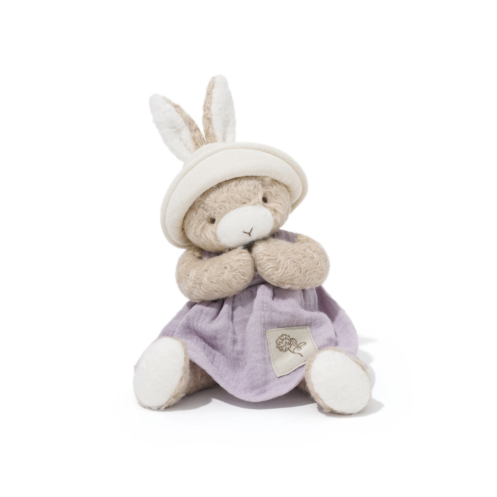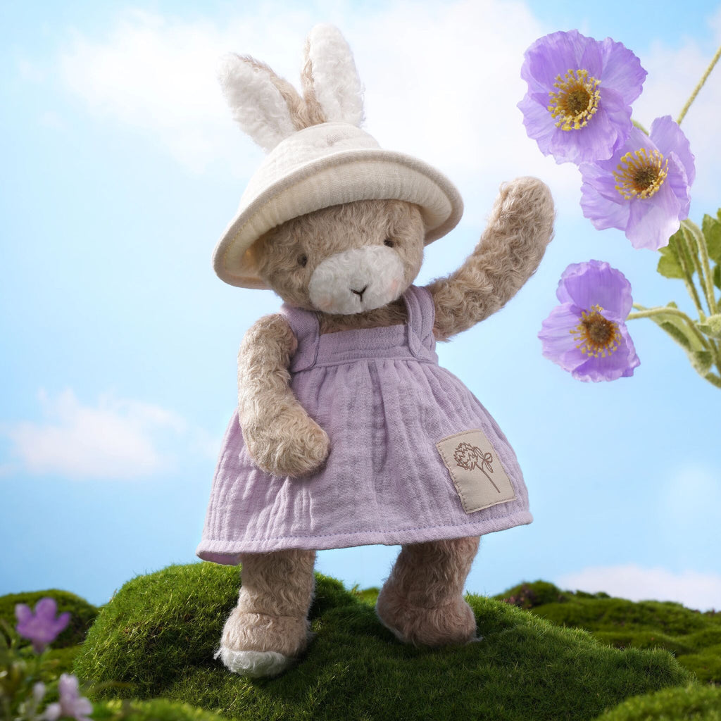 Meet Thistle, a special edition bunny created in celebration of Bunnies by the Bay’s 40th Anniversary! Designed as a heartfelt nod to the original bunnies that started it all, Thistle is full of nostalgia and timeless charm. She’s dressed in a darling lilac purple jumper with a matching sunhat and made from our signature wavy nibble fur for the softest snuggles.