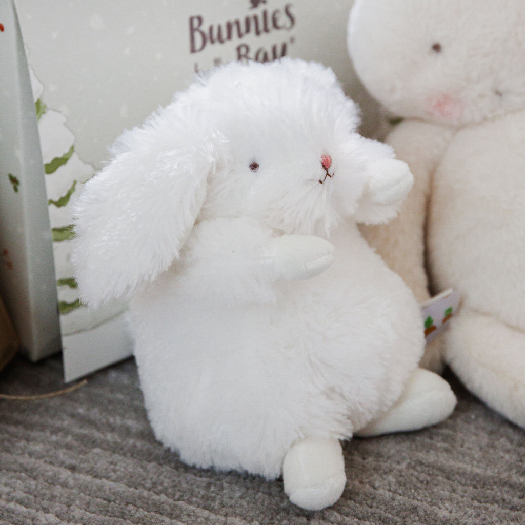 Wee Ittybit may be small in size, but he is big in love. The perfect size for cuddling and snuggling and taking along on every little adventure. Ittybit is one of our most popular stuffed bunnies, loved by wee ones and adults alike. This chubby little white bunny rabbit is rounder than he is tall, with fluffy white fur and a sweet hand embroidered face. The perfect gift at any time for anyone.