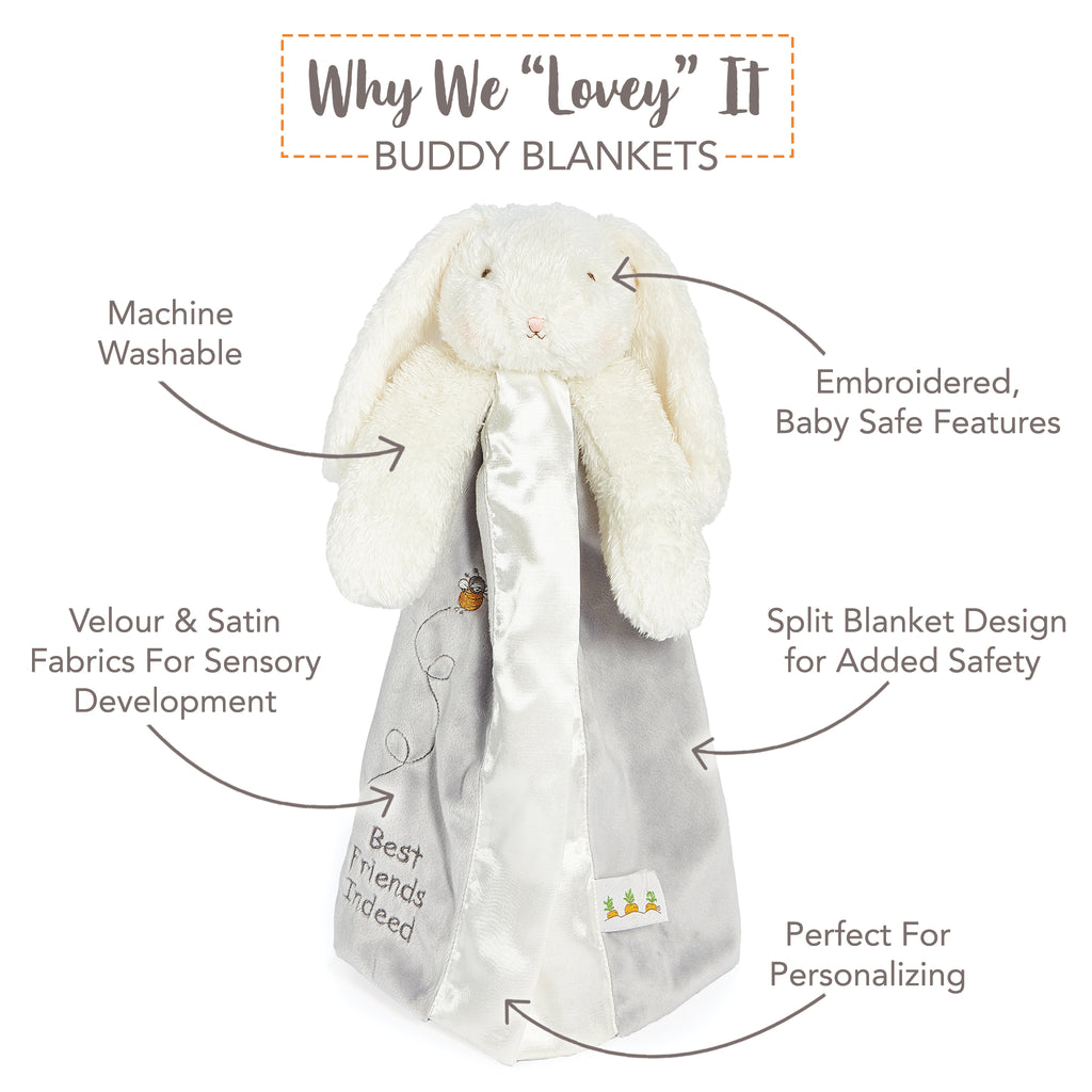 Welcome Sweet Baby - Layette Gift Set is the perfect way to welcome a new baby bunny to the bunch! Perfect for a baby boy or girl gift, this sweet gift set features our best-selling lovey, book, and a sweet baby's first outfit with a rattle too! Add custom embroidery to create a personalized gift to be remembered for a lifetime.